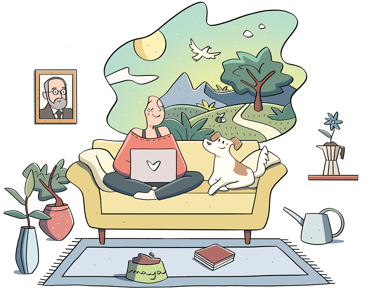 Dimentica la ricerca estenuante di un bravo terapeuta, le attese infinite e lo stress. Grazie a Freud, puoi finalmente rilassarti sul tuo divano preferito e condividere i tuoi pensieri più profondi, anche in pigiama, se lo desideri. Ci siete solo tu e il tuo terapeuta, quando vuoi, in modalità webcam.